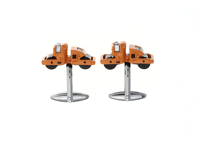 ロードローラー-カフスボタン-brown-働く車-男-カフリングス-道-ユニーク-父の日-プレゼント-個性-カフス専門店