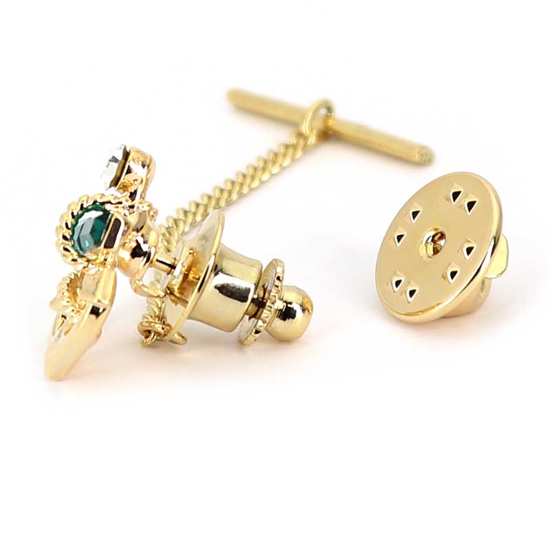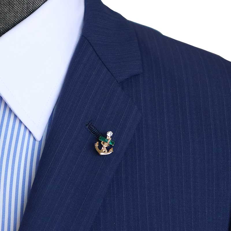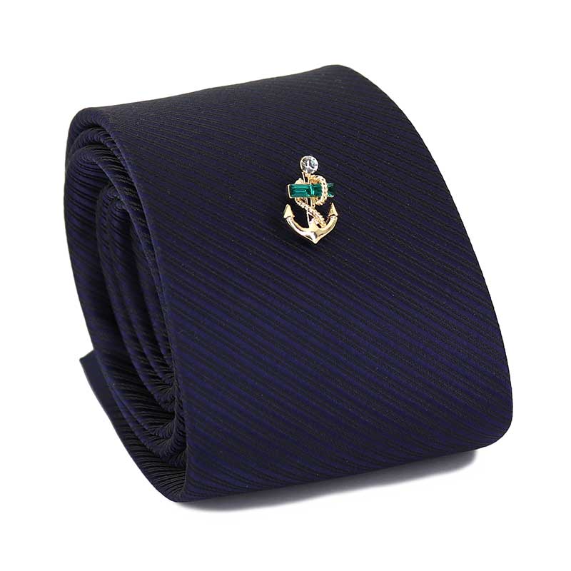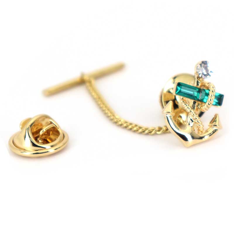 ロープに絡まれた碇-タイタック-ラペルピン-2way仕様-銀色-タイタック-ラペルピン-チェーン付-ゴールド系-男女-カフリングス-営業マン