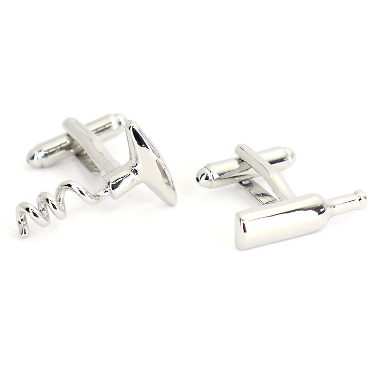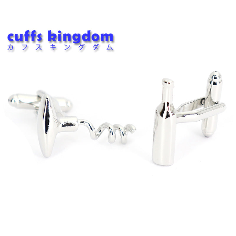 ワインボトル-ワインオープナー-アシンメトリー-カフスボタン-銀-色-シンプル-男性-デザイン-シルバー-バーテンダー-男-カフリングス-イケメン-プレゼント-カフス専門店