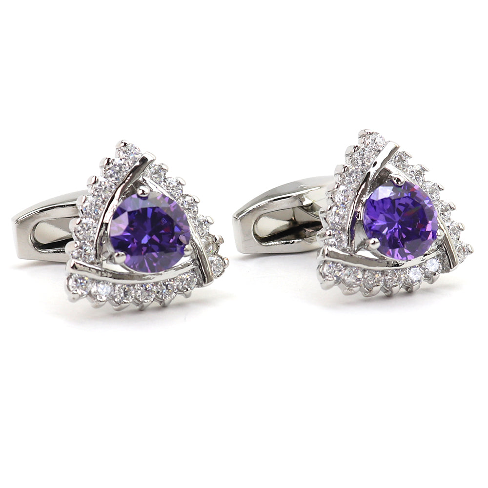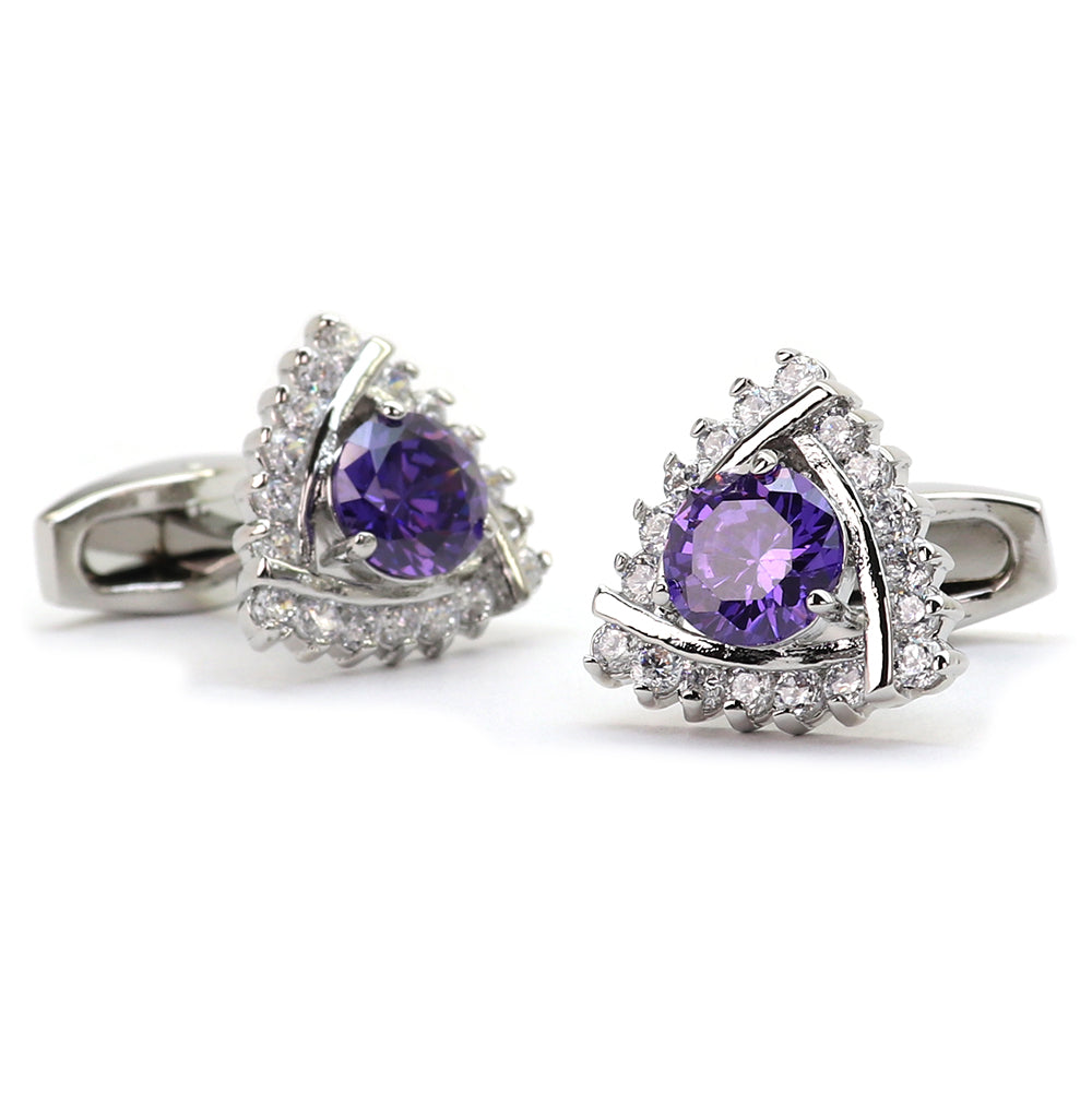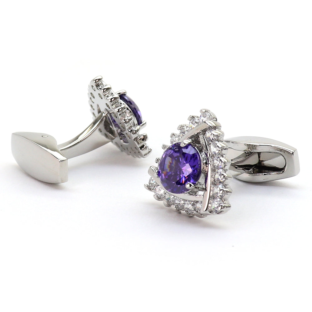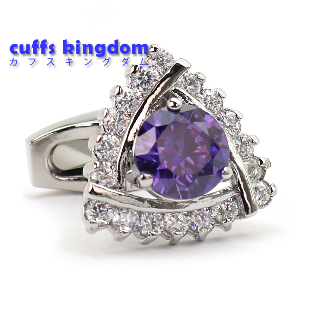 三角形 パープル クリスタル カフスボタン シルバー ジュエル系 おしゃれ 男女 カフリングス エレガント 豪華 結婚式 プレゼント カフス専門店