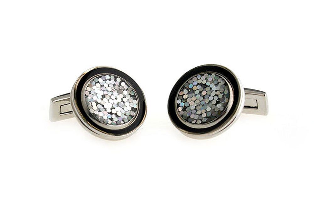 丸型-ブラックリング-きらきら-カフスボタン-ラメ-黒-灰色-ダーク系-男性-カフリングス-クール系-円形-カフス専門店