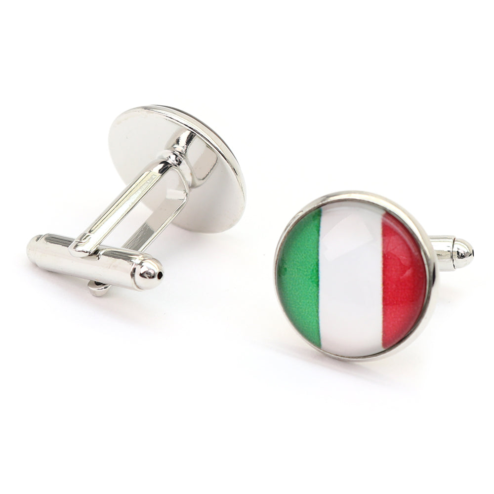 円形 ポップ 国旗 シリーズ 【 イタリア 】 カラフル系 ビジネス 社交 国旗 カフリングス 集まり 人気 個性 フォーマル カフス専門店