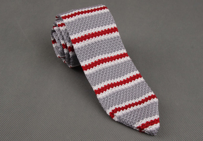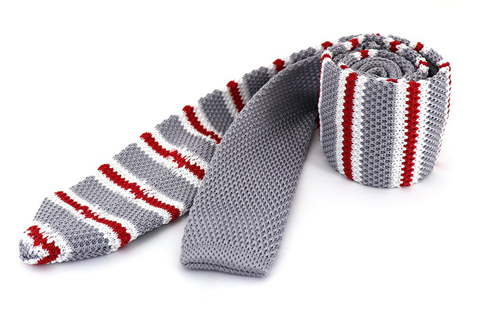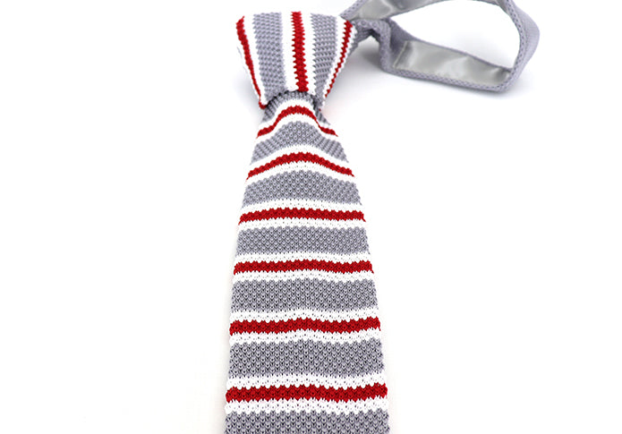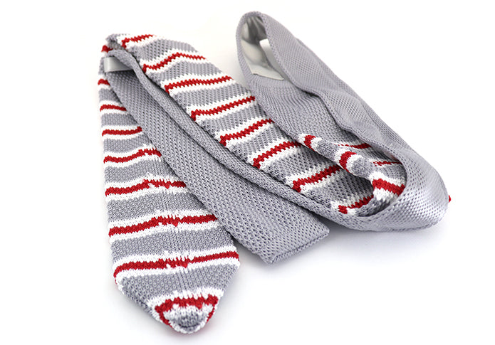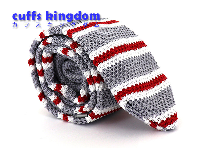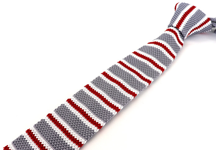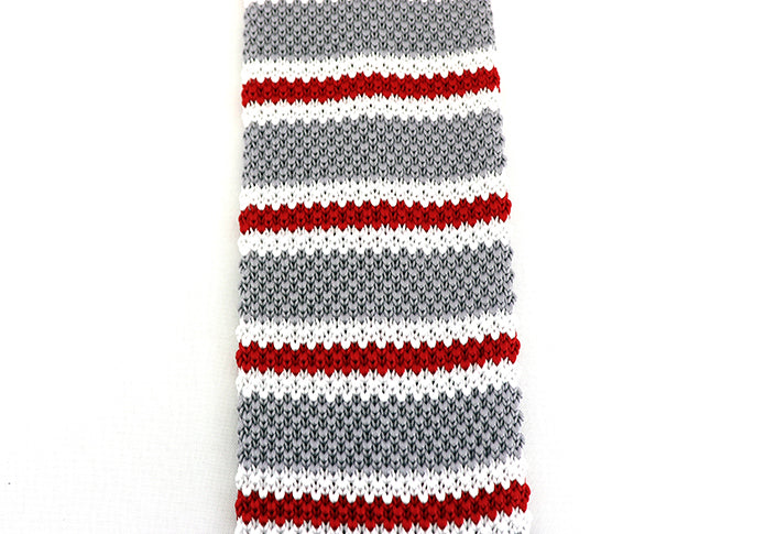 剣先-尖-山-ニット-タイ-グレー-ベース-白-赤-ボーダー柄-スーツ-フォーマル-プレゼント-ギフト-日用-普段使い-さり気ない-お洒落-剣山-オススメ-通販-人気-ビジネス-ギフト-ユニーク-営業-信頼-英国