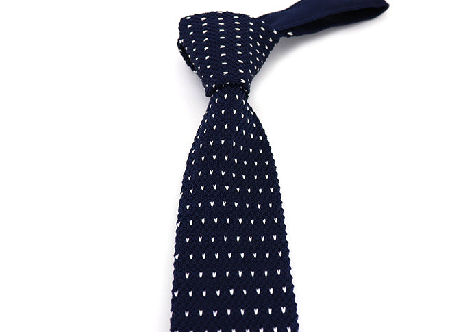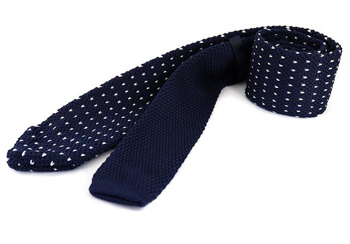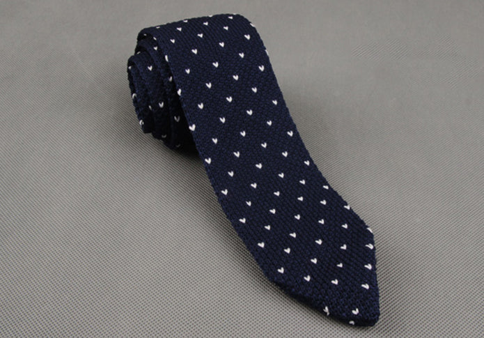 剣先-尖-山-ニット-タイ-紺-白-ハート-ドット柄-スーツ-フォーマル-プレゼント-ギフト-日用-普段使い-さり気ない-お洒落-剣山-オススメ-通販-人気-ビジネス-ギフト-ユニーク-営業-信頼-英国