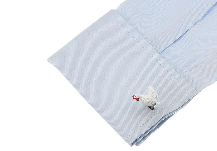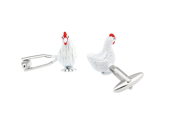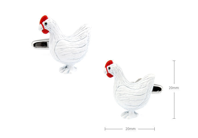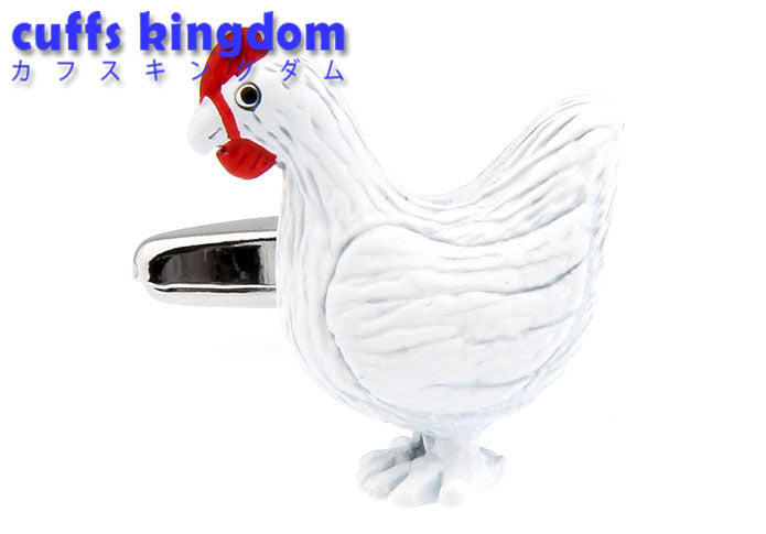 動物-シリーズ-にわとり-カフスボタン-白系-ホワイト-男女-カフリングス-豪華-かわいい-フォーマル-カジュアル