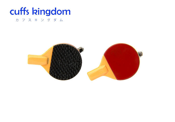 卓球ラケット-黒-x-赤色-カフスボタン-カラフル系-スポーツ-運動-部活-カフリングス-人気-趣味-思い出-カフス専門店