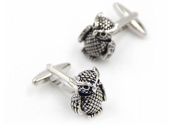 可愛い-フクロウ-羽が動くよ-銀色-カフスボタン-シルバー-男女-カフリングス-スーツ-プレゼント-ギフト-ユニーク-動物-人気-カフス専門店