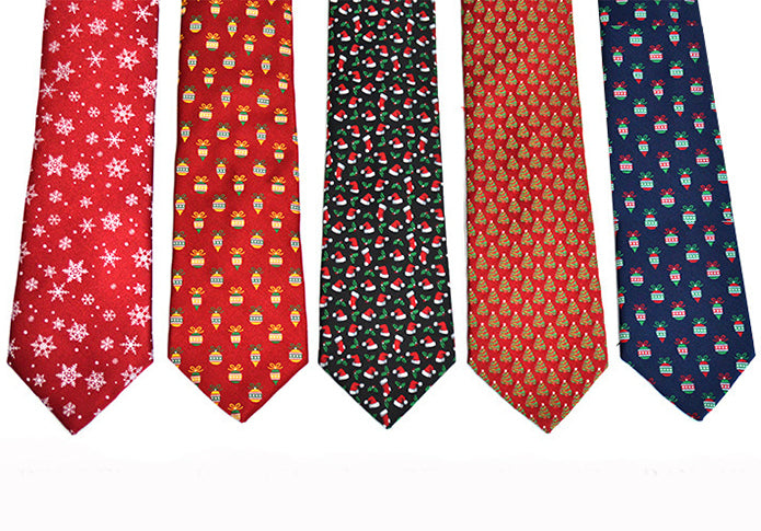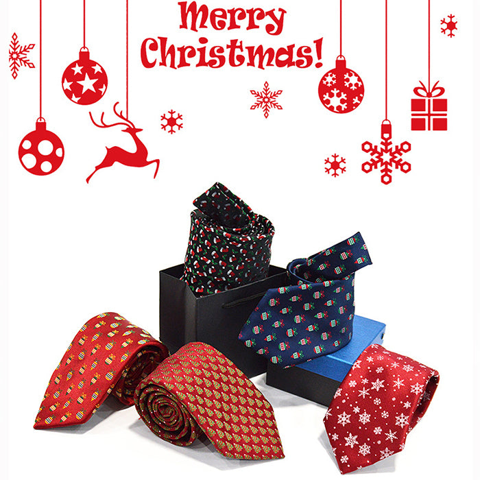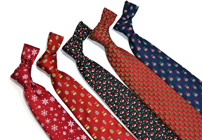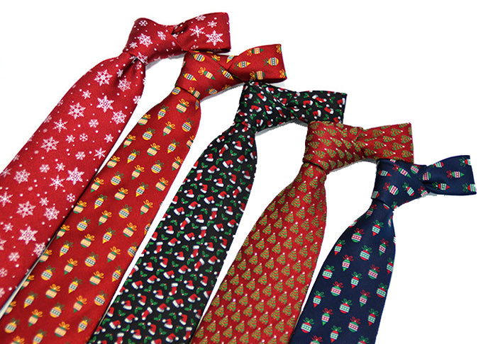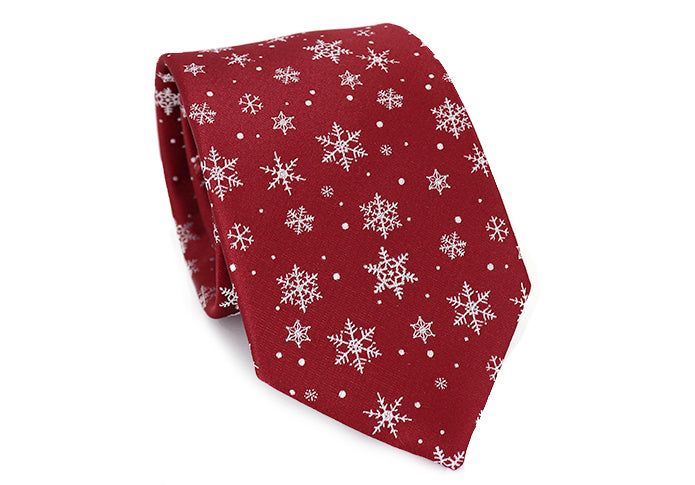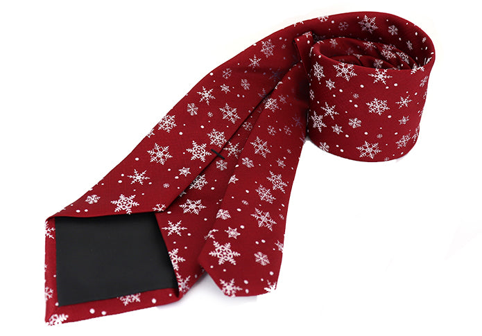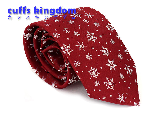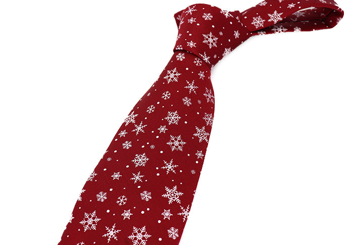 可愛い-モチーフ-ネクタイ-雪の結晶-赤ベース-クリスマス-イベント-パーティ-プレゼント-ギフト-目立つ-季節-感-限定-主役-お祝い-華やか-リッチ-動物-美品-個性的-ご贈答-企画-営業