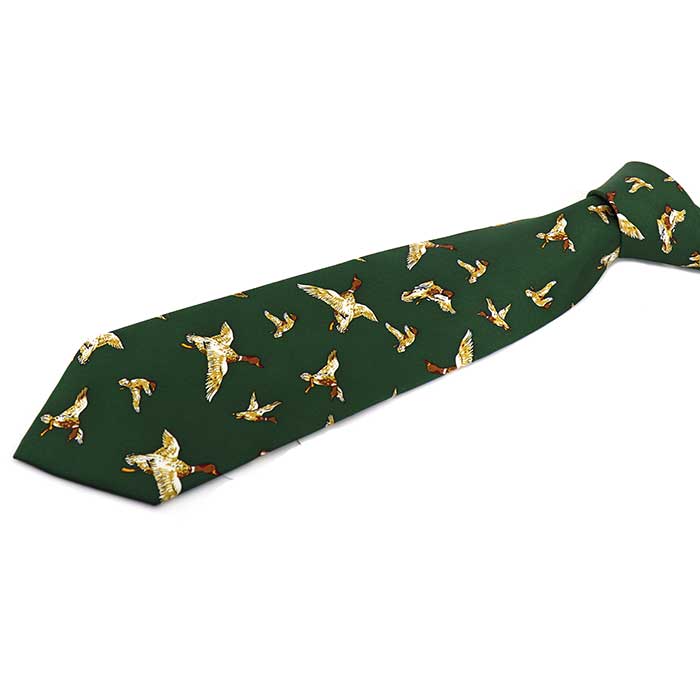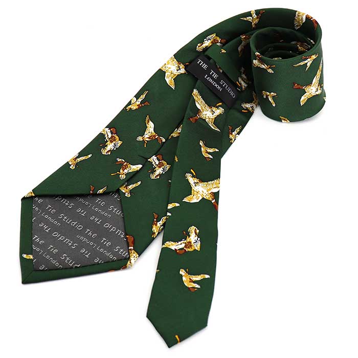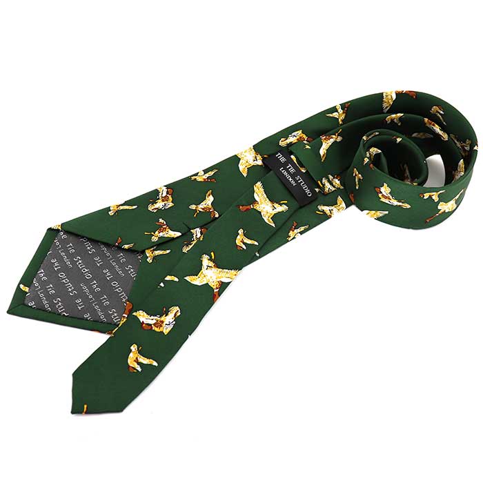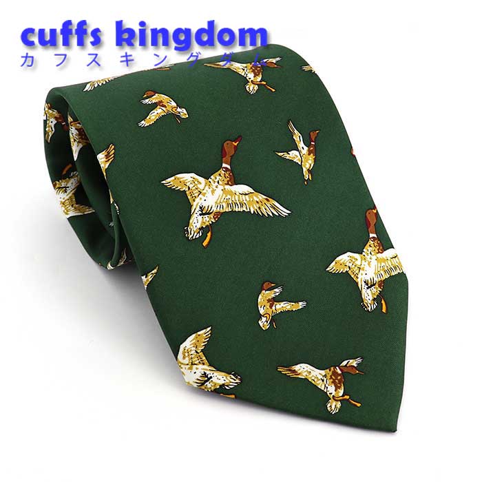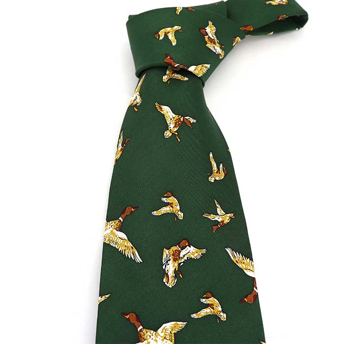 合鴨-ハンティング-柄-アニメ-シルクネクタイ-緑