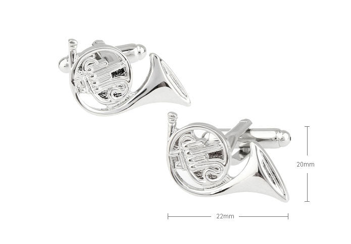 吹奏楽-ホルン-銀色-カフスボタン-シルバー-音楽-男女-楽器-大人気-プレゼント-おしゃれ-結婚式-カフス専門店