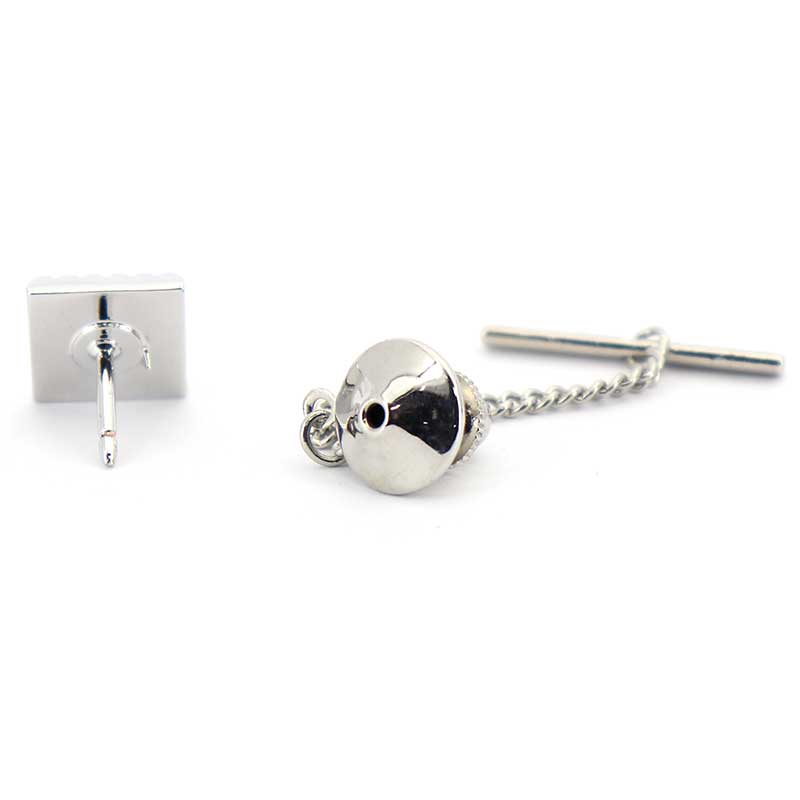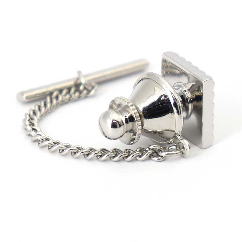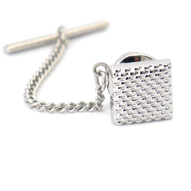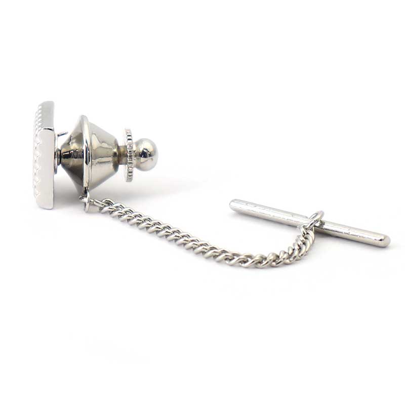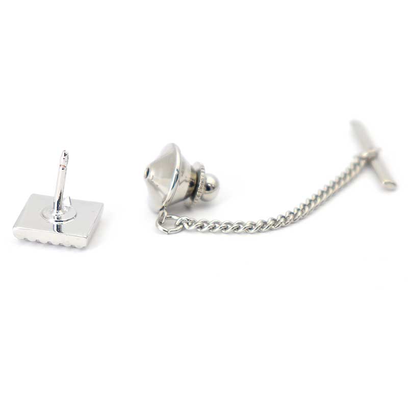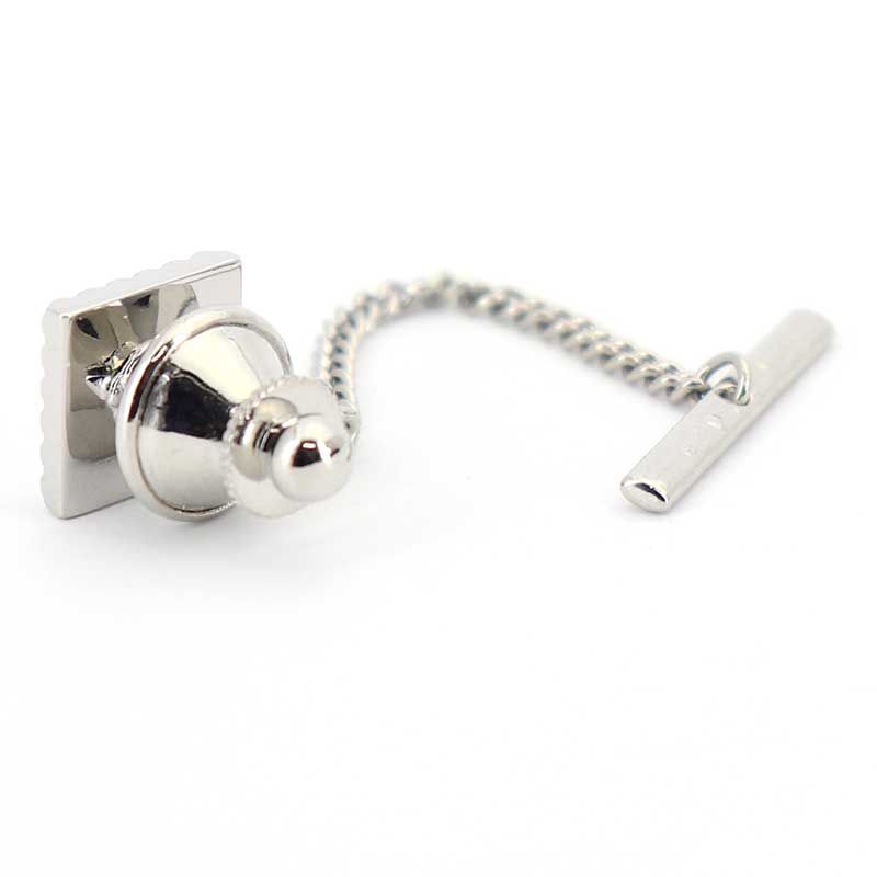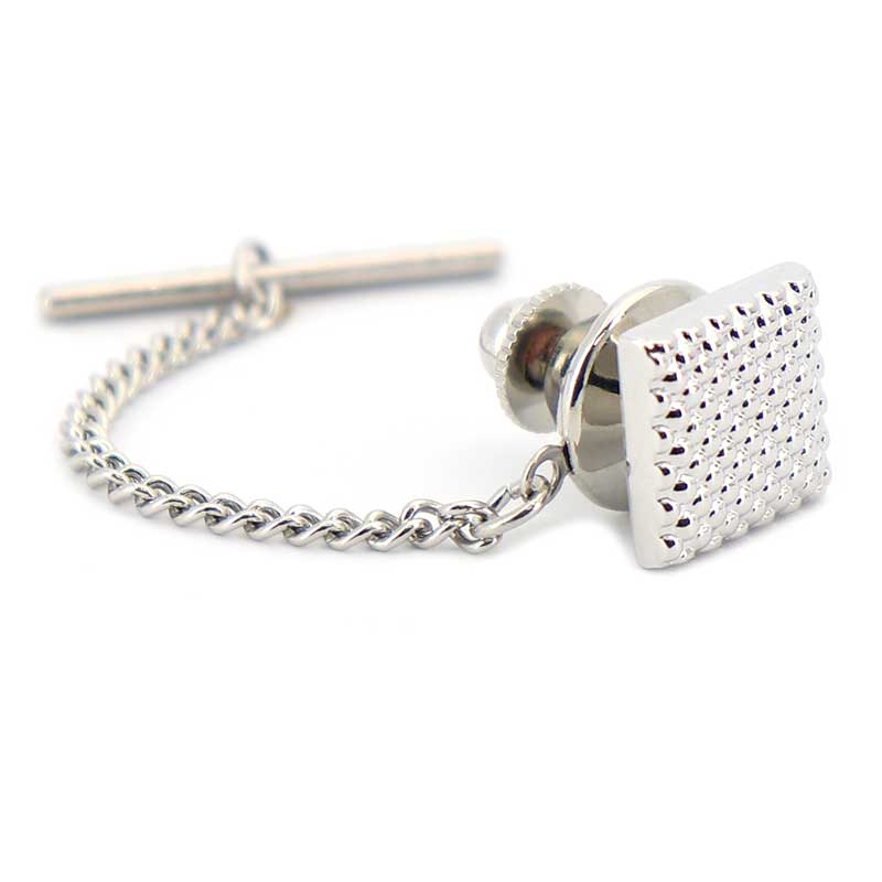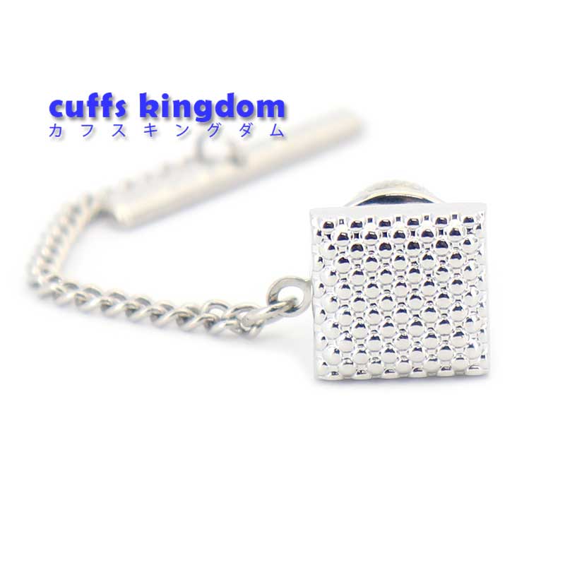 ■四角い ネクタイピン 【 銀色 】 ( タイタック ラペルピン ) チェーン付 ■ シルバー系 男女 カフリングス 営業マン