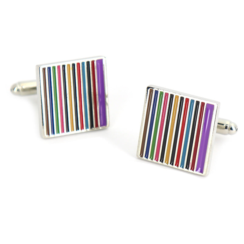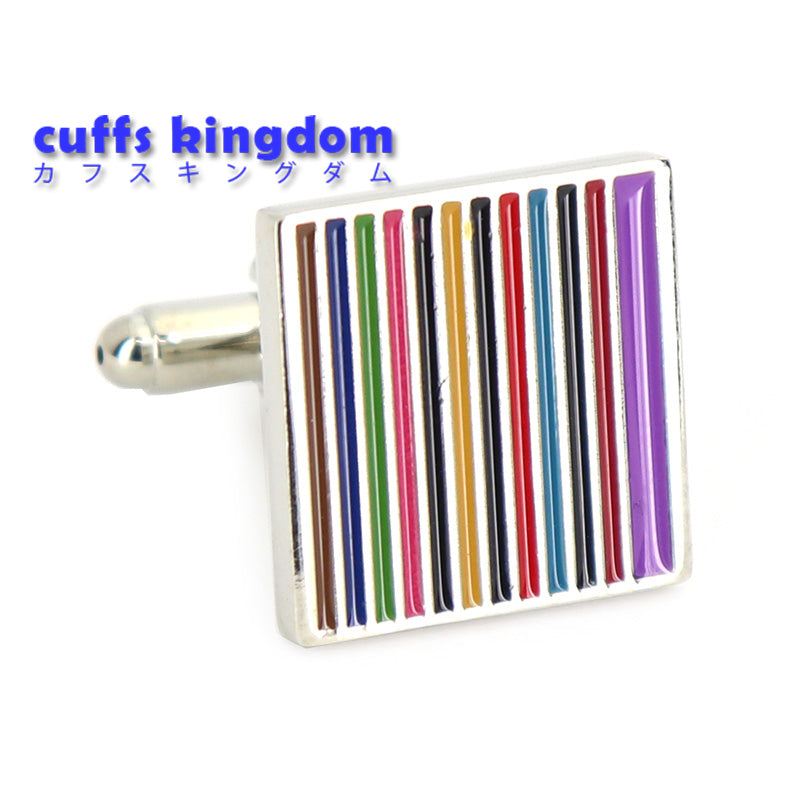 多彩 ストライプ 柄 カフスボタン ( 写真より実物の方カワイイ )【 カラフル系 力強さ 親しみ おしゃれ カフリングス 人気 個性 プレゼント カフス専門店 】