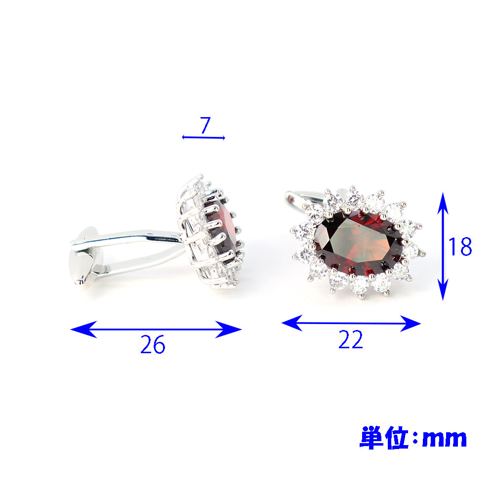 大粒-レッド-クリスタル-カフスボタン-オーバル型-シルバー-シルバー-ジュエル系-おしゃれ-男女-カフリングス-エレガント-豪華-結婚式-プレゼント-カフス専門店