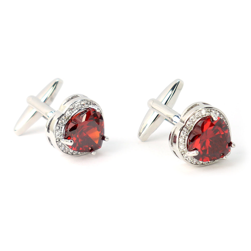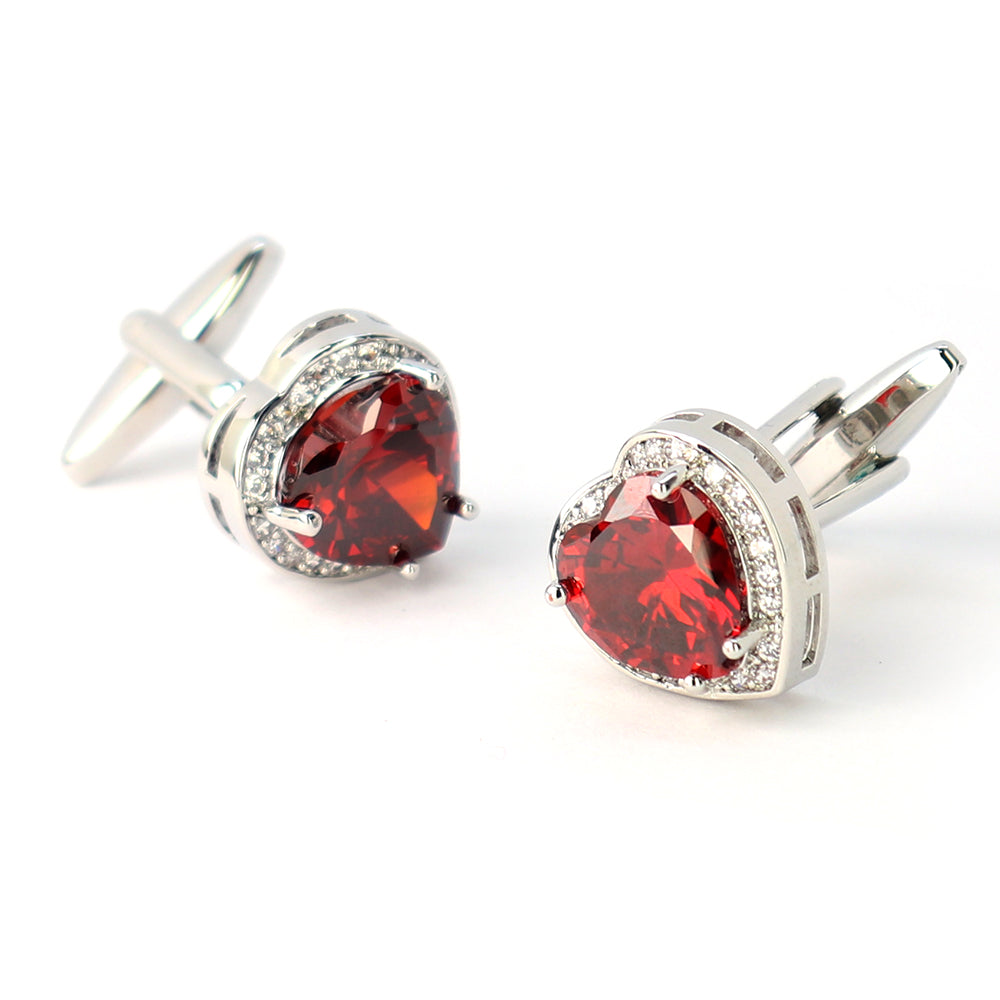 大粒-レッド-クリスタル-カフスボタン-ハート型-シルバー-シルバー-ジュエル系-おしゃれ-男女-カフリングス-エレガント-豪華-結婚式-プレゼント-カフス専門店
