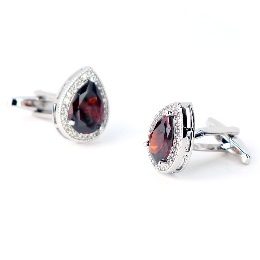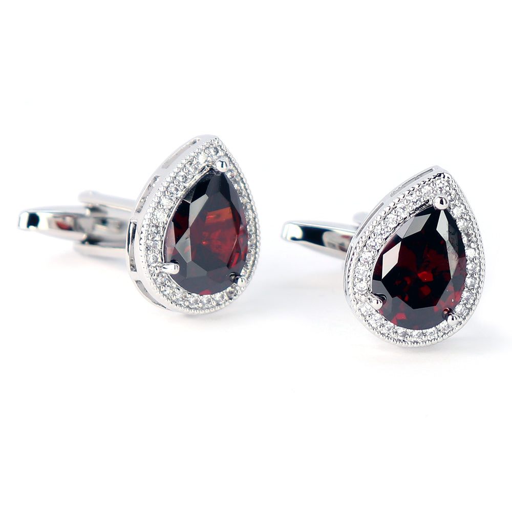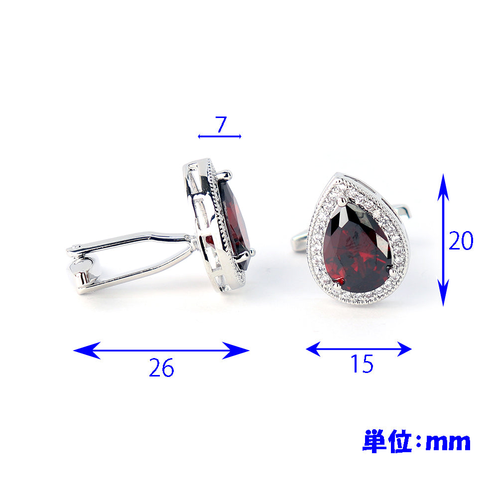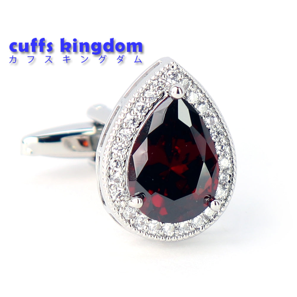 大粒-ワインレッド-クリスタル-カフスボタン-しずく型-シルバー-シルバー-ジュエル系-おしゃれ-男女-カフリングス-エレガント-豪華-結婚式-プレゼント-カフス専門店