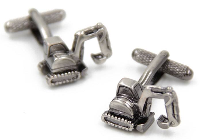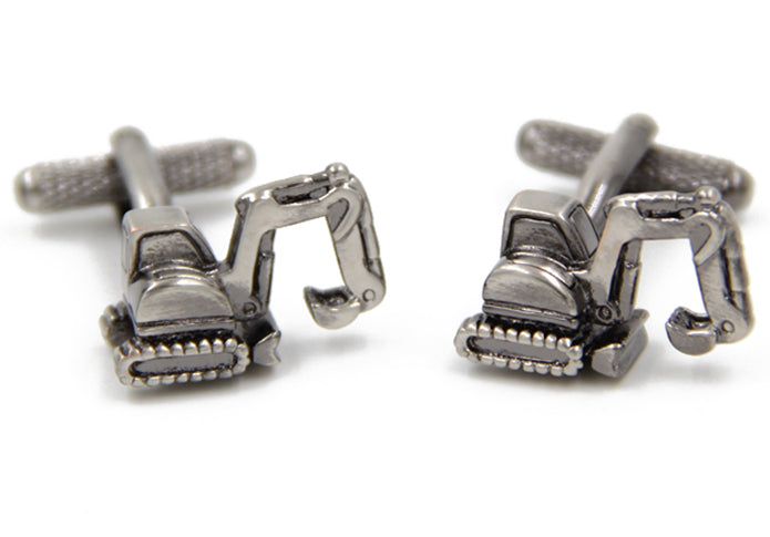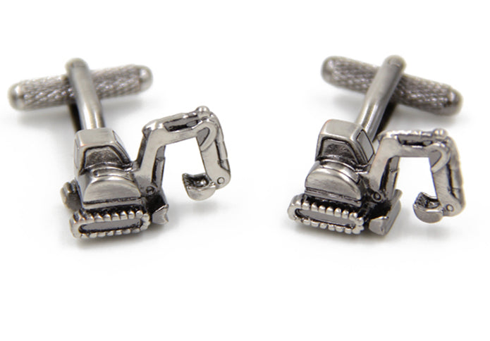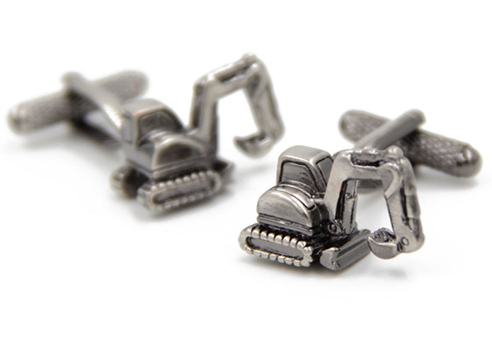 工事-現場-ユンボ-黒銀色-カフスボタン-シルバー-男女-カフリングス-スーツ-人気-プレゼント-ギフト-植物-ペット-カフス専門店