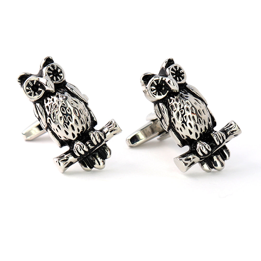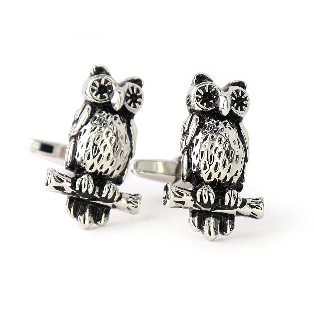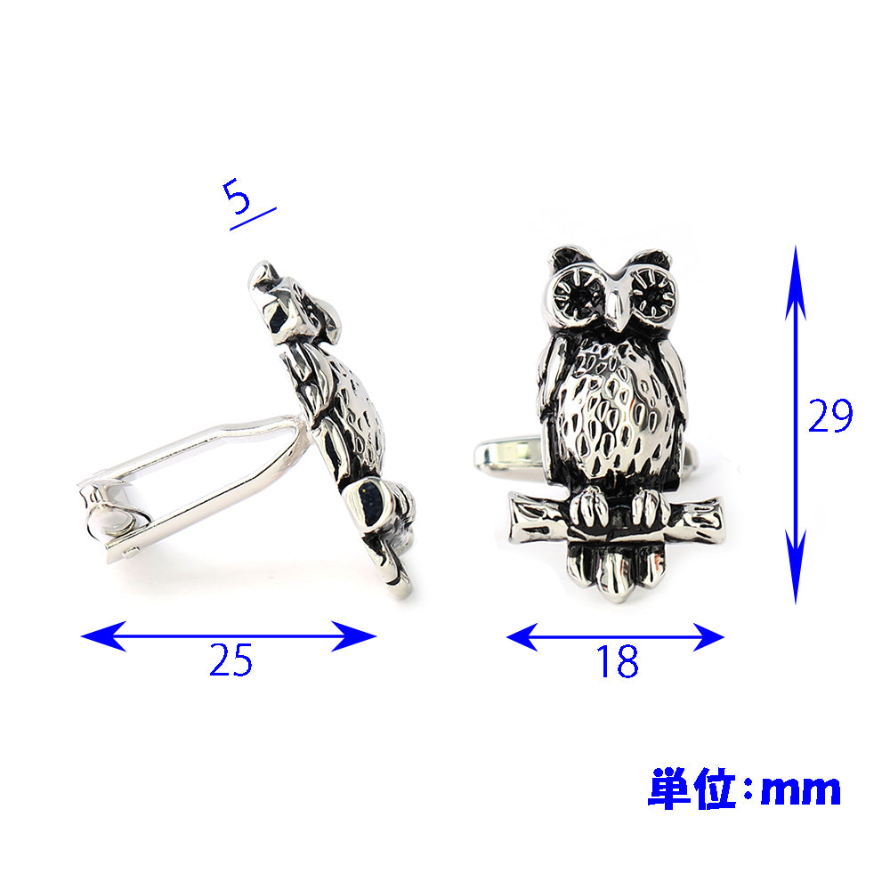 木にとまった-ミミズク-カフスボタン-シルバー-男女-カフリングス-ミミズク-動物-プレゼント-ギフト-大人気-個性-成人式-卒業式-結婚式-カフス専門店
