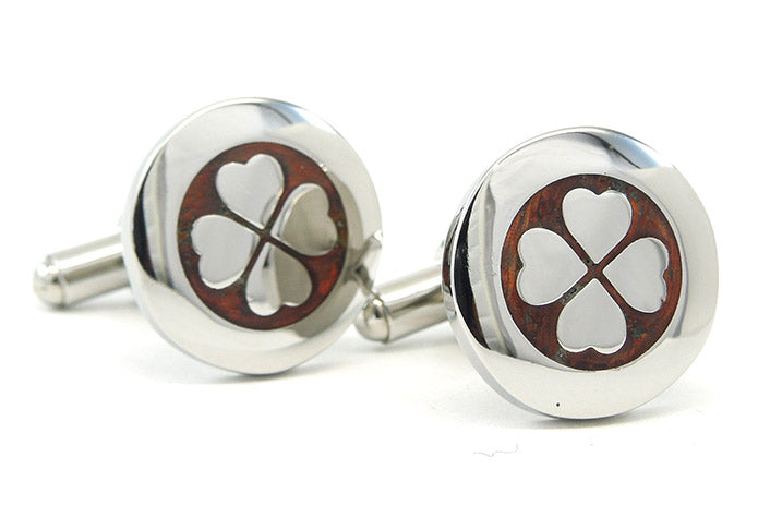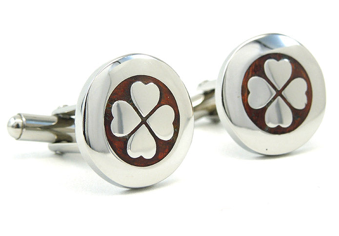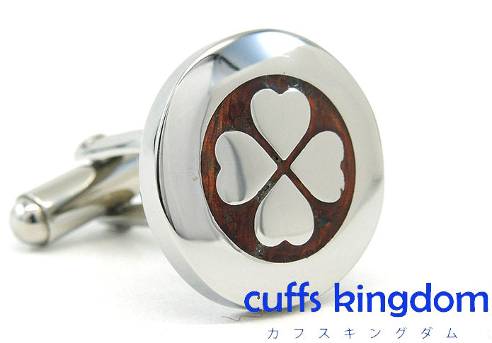 木目-四つ葉-クローバ-銀-木-カフスボタン-銀色系-男女-カフリングス-営業マン-おしゃれ-かわいい-結婚式-カジュアル-シンプル-スーツ-人気-プレゼント-ギフト-入園式-入学式-成人式