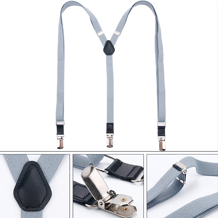 色はスモークブルーのY型サスペンダーです。男性、女性の方にも使っていただけます。