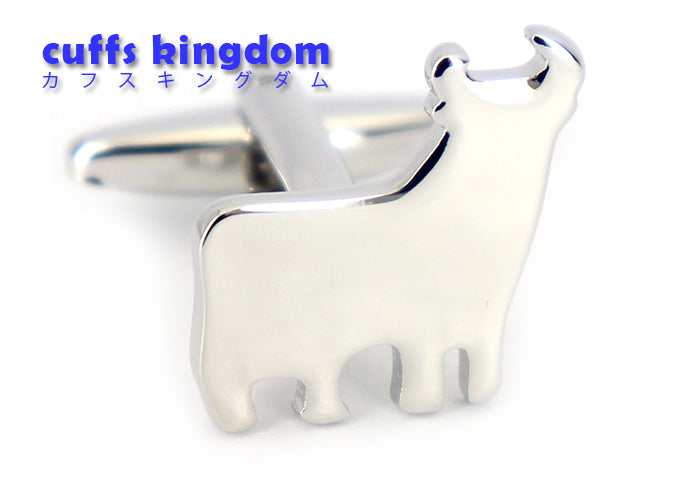 牛-シルエット-デザイン-カフス-銀色-シルバー系-男女-ユニーク-おすすめ-おしゃれ-男女-営業マン-結婚式-スーツ-人気-カフリングス-プレゼント-ギフト-入園式-入学式-成人式