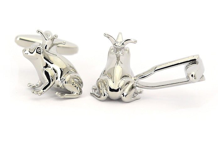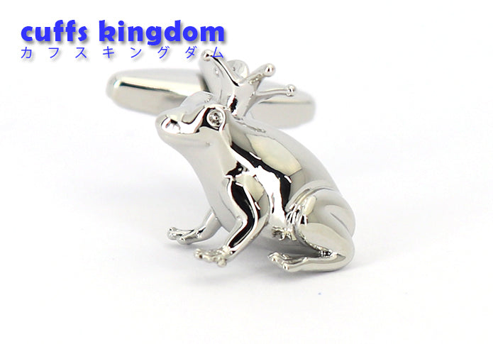 王冠-トノサマガエル-カフリングス-色-銀色-カフスボタン-シルバー-水辺の生き物-男女-王様-おしゃれ-かわいい-結婚式-プレゼント-入園式-入学式-成人式-カフス専門店