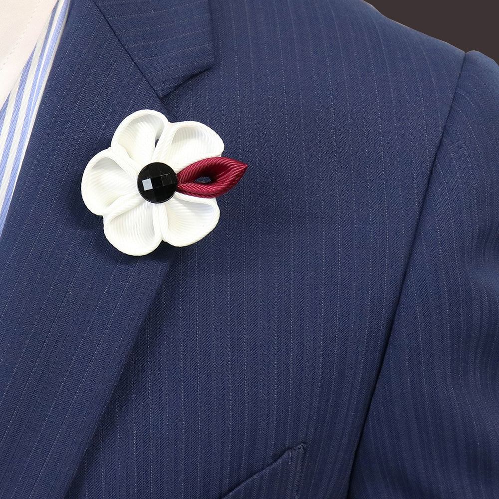 白いお花のラベルピン-白色-工芸-コサージュ-ブローチ-男女-プレゼント-おしゃれ-スーツ