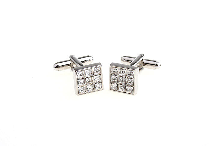 白-四角-タイル調-白色-カフスボタン-シルバー-男女-カフリングス-営業マン-おしゃれ-四角形-結婚式-スーツ-人気-プレゼント-エレガント-ギフト-入学式-成人式