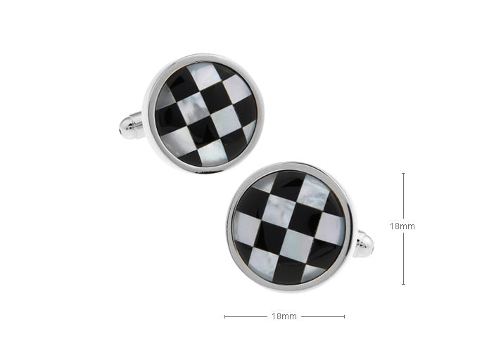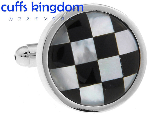 白-黒-チェック柄-立体-サークル-白-黒-色-カフスボタン-円形-シェル-男女-カフリングス-営業マン-おしゃれ-エレガント-スーツ-人気-プレゼント-ギフト-ラグジュアリ-結婚式-入学式-卒業式-カフス専門店