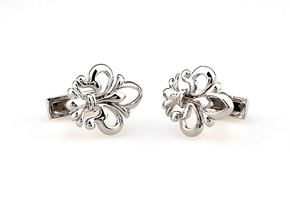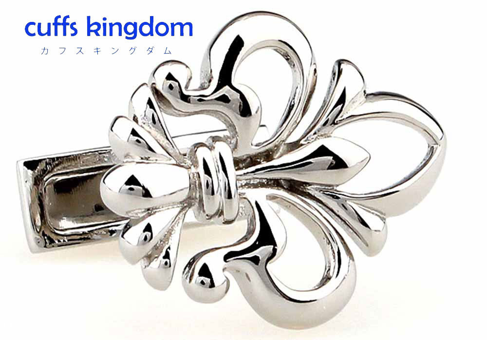 百合の紋章-くりぬき-モチーフ-カフスボタン-銀色-系-男女-カフリングス-営業マン-おしゃれ-かわいい-結婚式-カジュアル-シンプル-スーツ-人気-プレゼント-ギフト-入園式-入学式-成人式