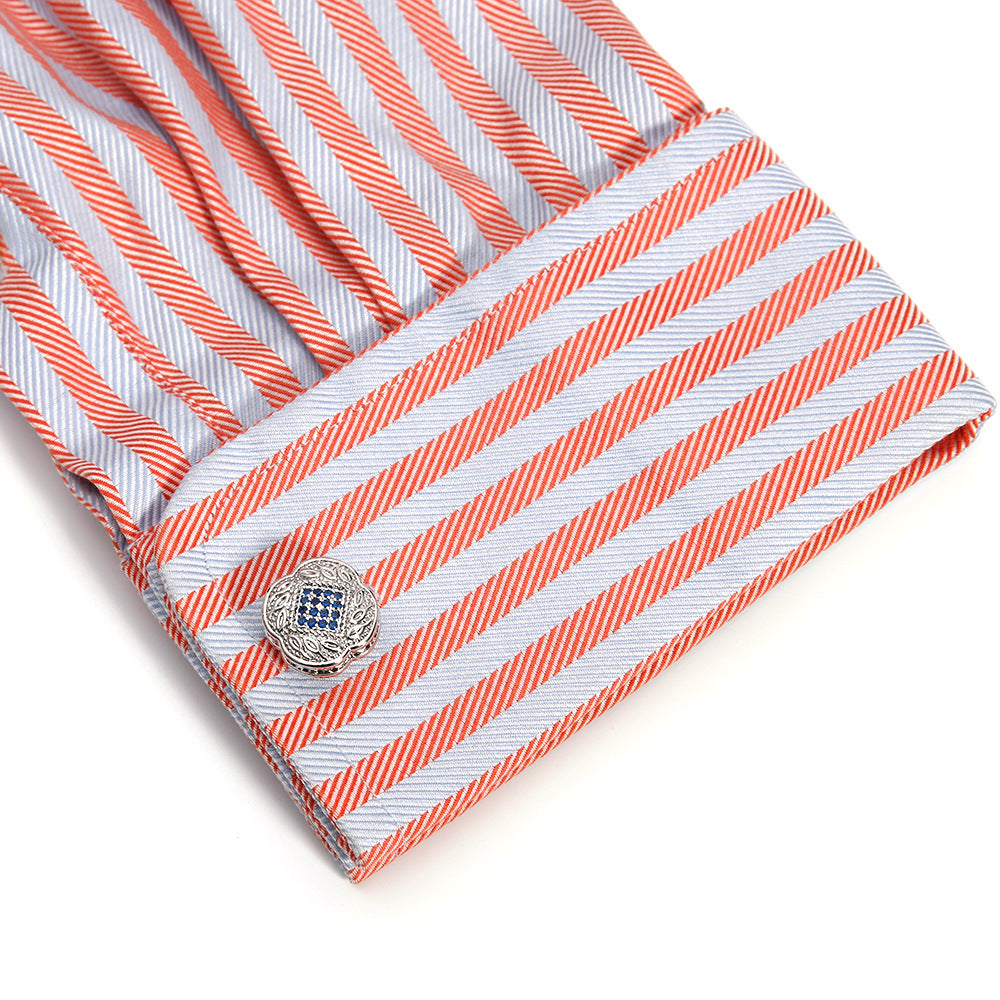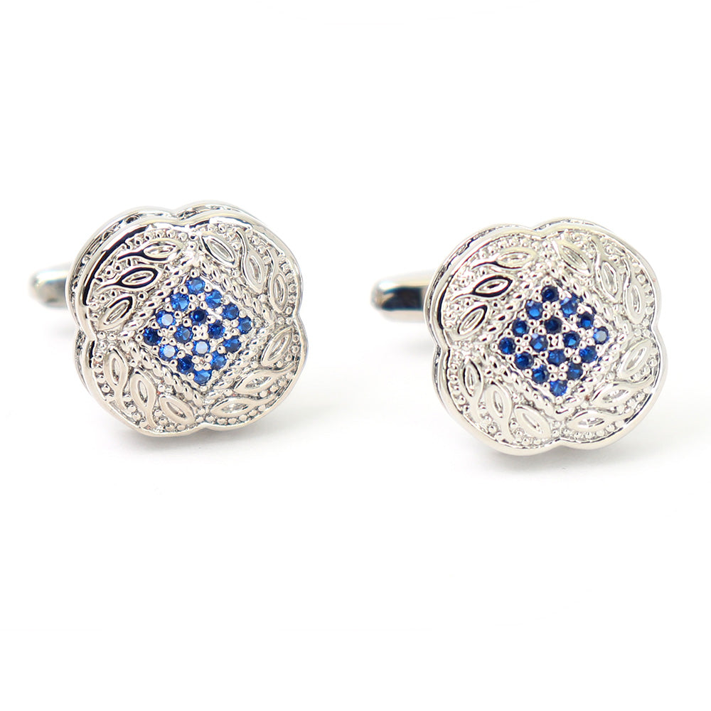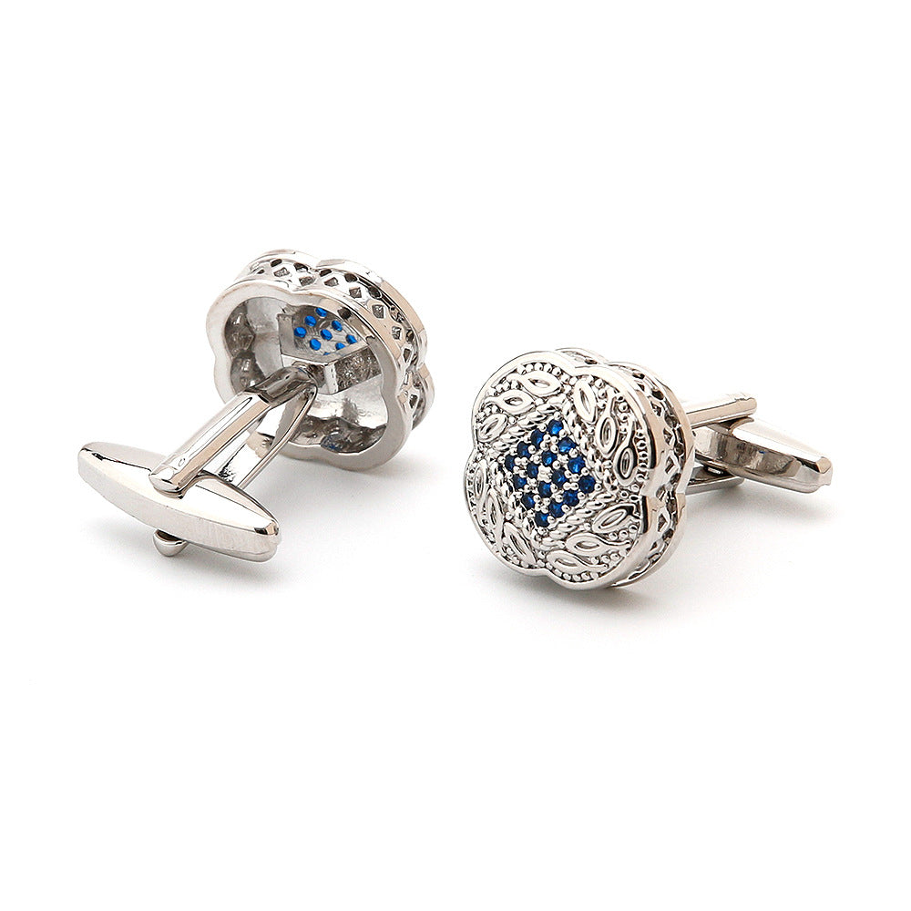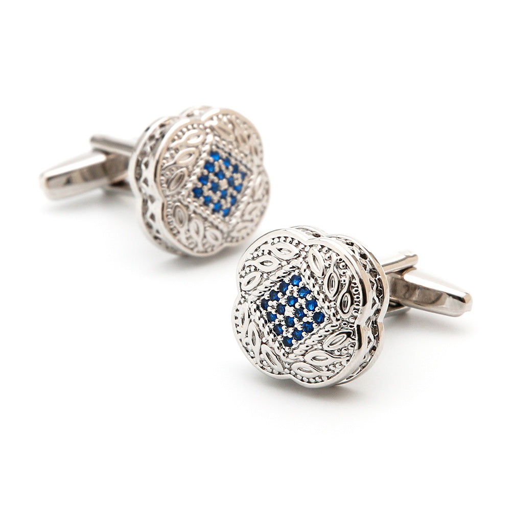 細やかな象嵌細工-カフスボタン-シルバー-ブルー-おしゃれ-男女-かわいい-結婚式-スーツ-人気-カフリングス-プレゼント-ギフト-入園式-入学式-成人式