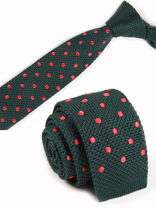 緑地-丸い-赤-ドット-刺-入り-ニット-タイ-模様編み-タイプ-スタイリッシュ系-シンプル-クール-男女-祝-おしゃれ-かわいい-結婚式-カジュアル-スーツ-人気-プレゼント-ギフト-入園式-入学式-成人式