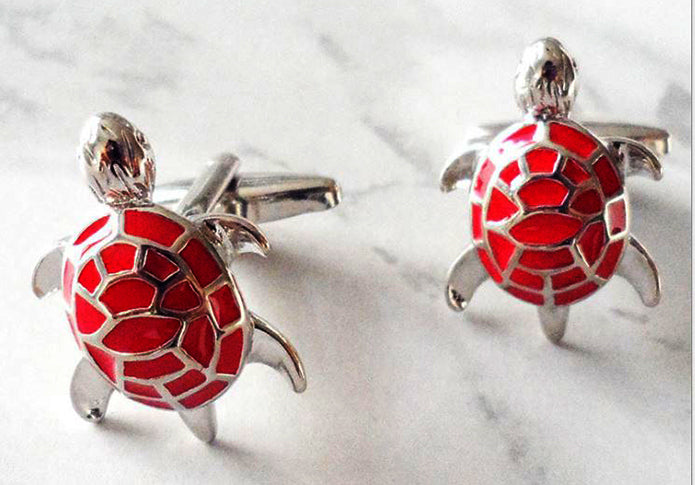 縁起物 カメ 【 金 x 緑 色 】【 銀 x 青 色 】【 銀 x 赤 色 】 カフスボタン 【 おすすめ おしゃれ 縁起物 かわいい 男女 営業マン 結婚式 スーツ 人気 カフリングス プレゼント ギフト 入園式 入学式 成人式 】