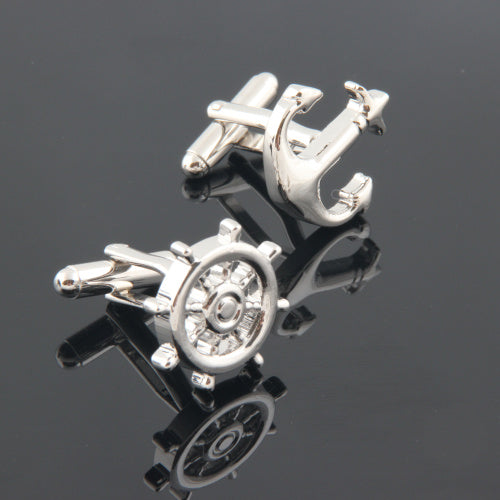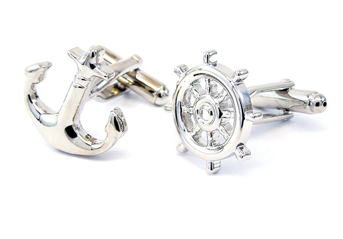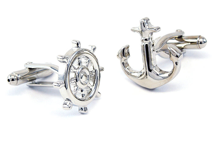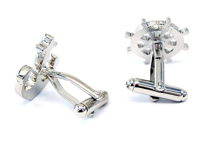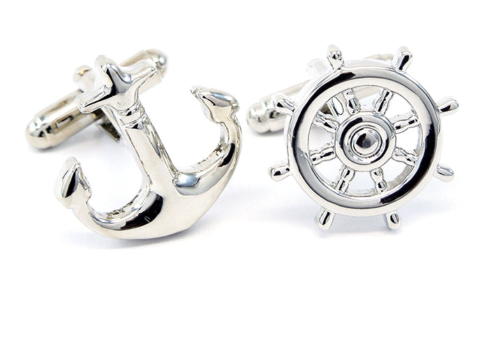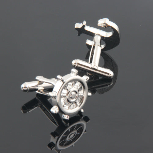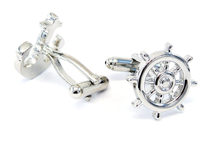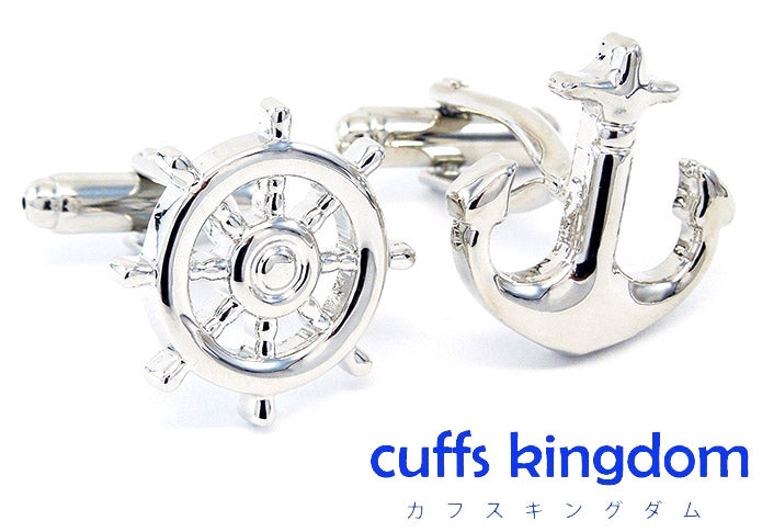 舵輪-と-錨-アシメトリー-カフス-シルバー-カフスボタン-銀色-系-男女-カフリングス-営業マン-おしゃれ-かわいい-結婚式-カジュアル-シンプル-スーツ-人気-プレゼント-ギフト-入園式-入学式-成人式