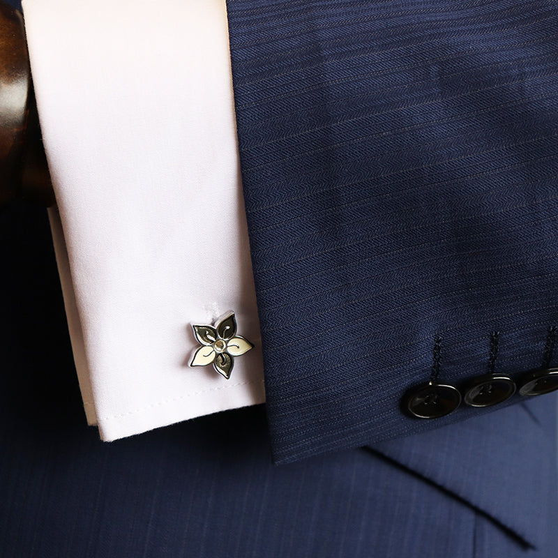 花びらカフスボタン-黒白-男女-カフリングス-プレゼント-おしゃれ-結婚式-カフス専門店