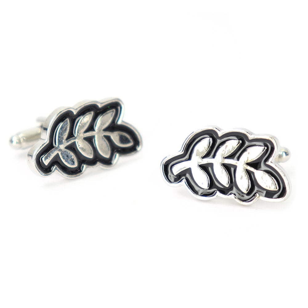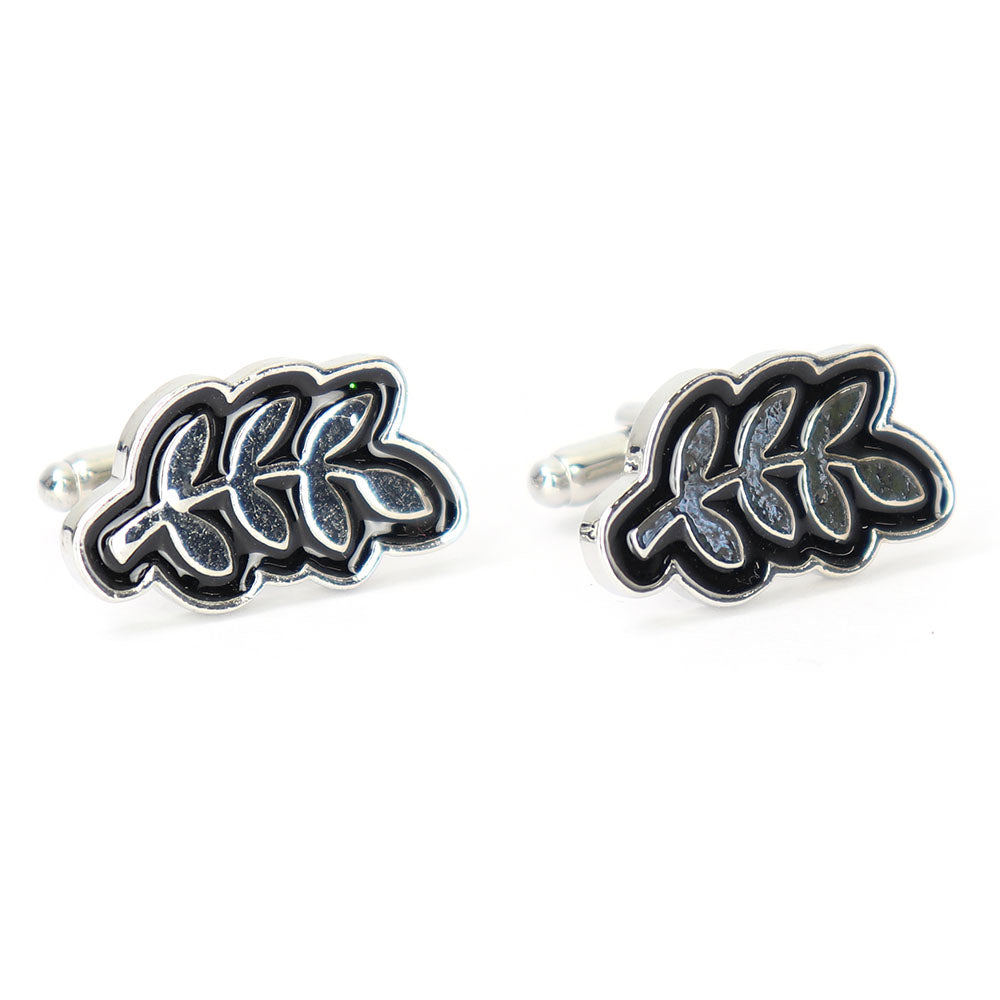 葉っぱ-モチーフ-カフスボタン-ブラック-植物-男女-カフリングス-営業マン-個性-スーツ-人気-かわいい-プレゼント-ギフト-カフス専門店