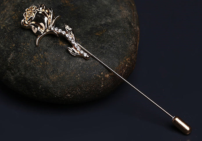 薔薇-モチーフ-きらきら-スーツ-アクセ-金色-ラペルピン-おしゃれ-かわいい-プレゼント-高級感-メンズ-お礼-ギフト-アクセサリ