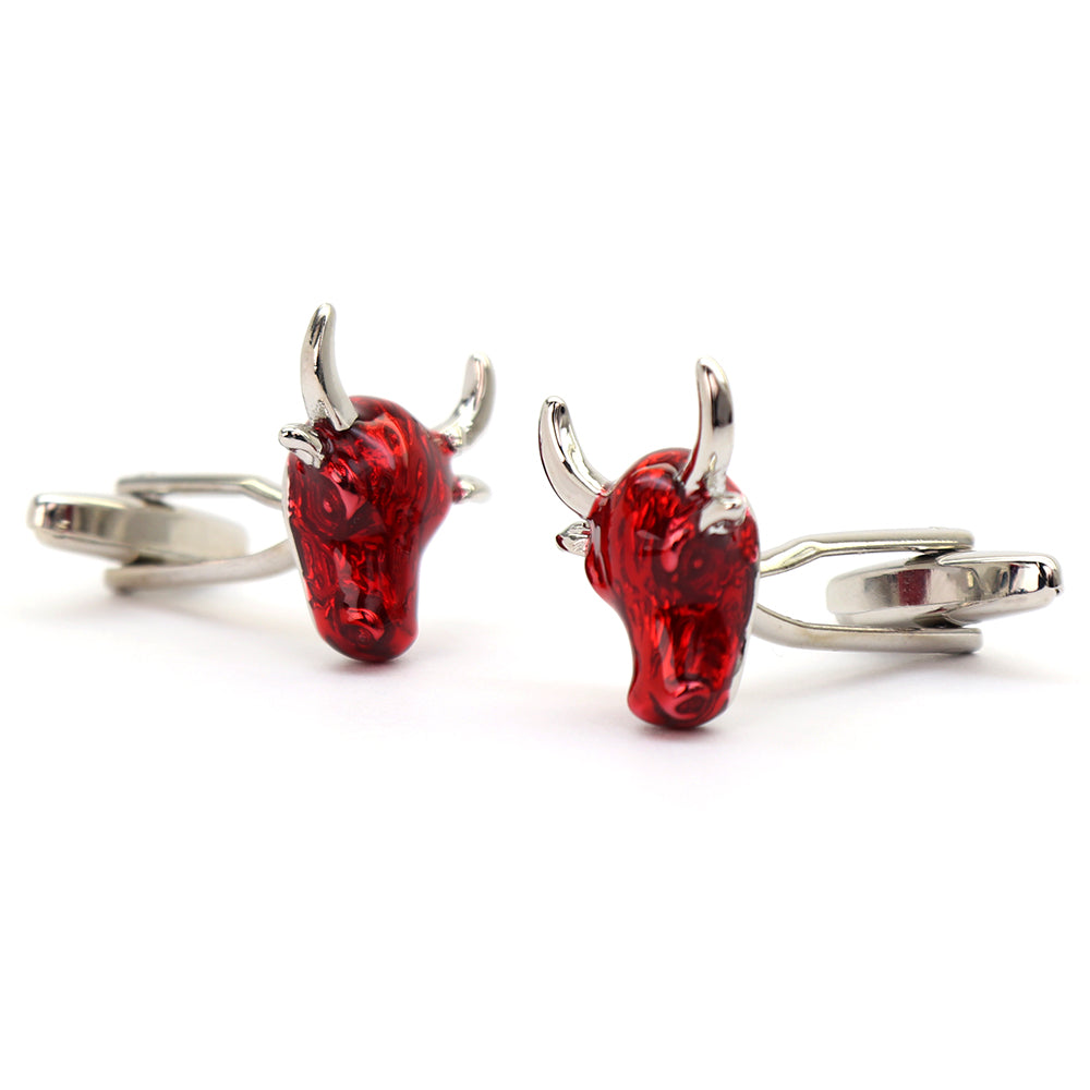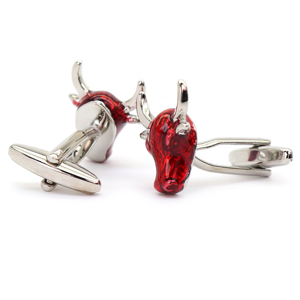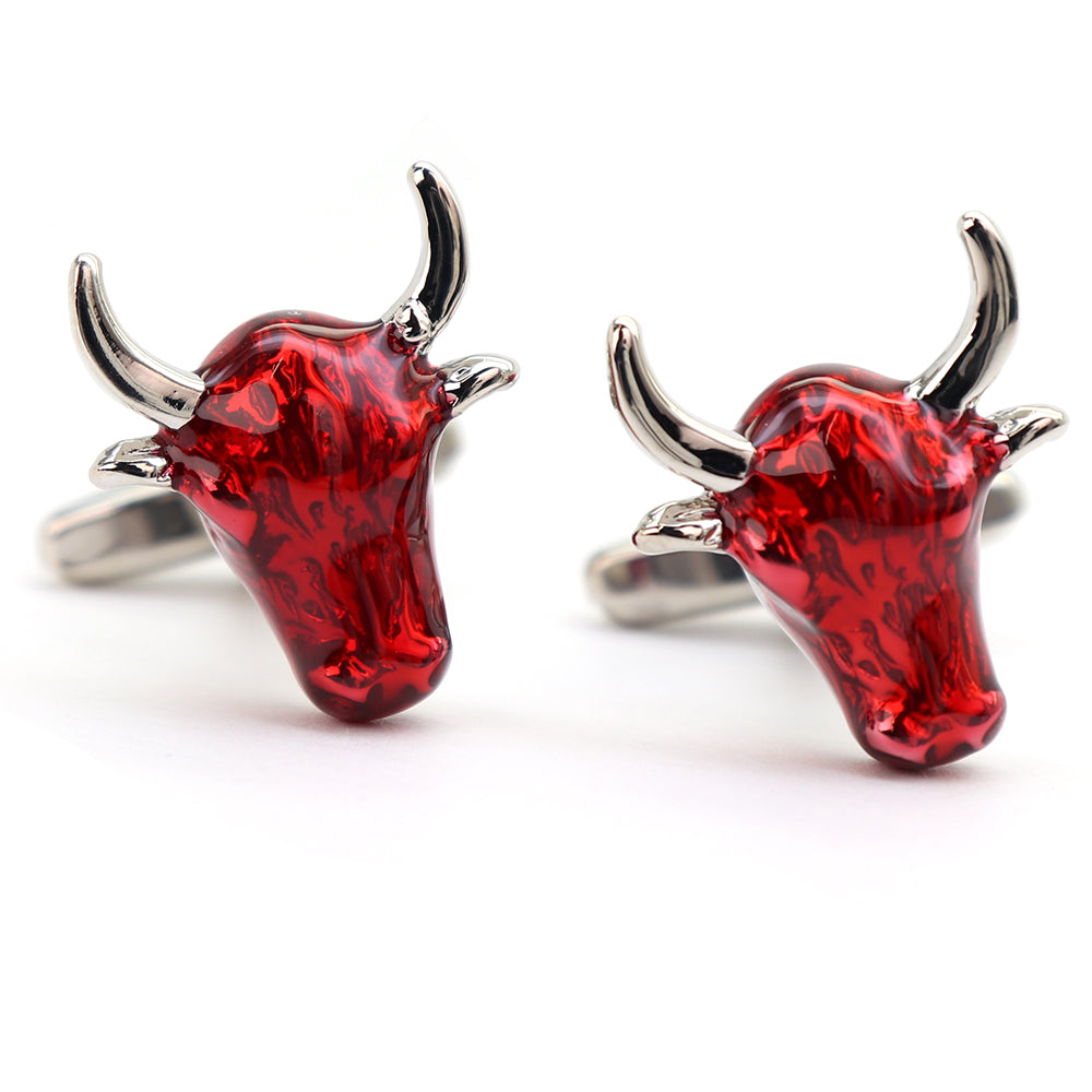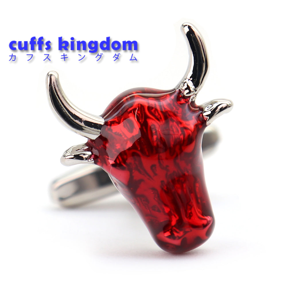 赤い牛ヘッド カフスボタン インパクト ユニーク 動物 営業マン 個性 スーツ 人気 おしゃれ カジュアル プレゼント ギフト 成人式 カフス専門店