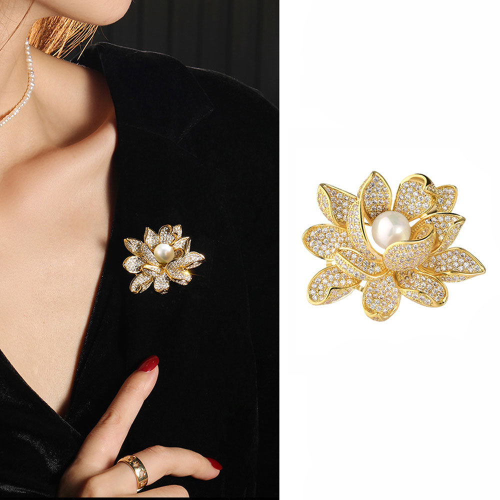 輝く ハスの花 ブローチ クリスタル ファッション コサージュ ピン エレガント 可愛い おしゃれ アクセサリー プレゼント 贈り物 メンズ レディース 子供 ジュエリー カフス専門店