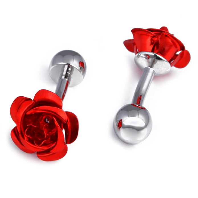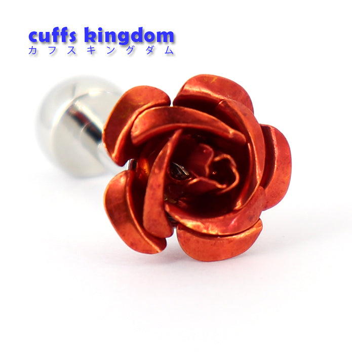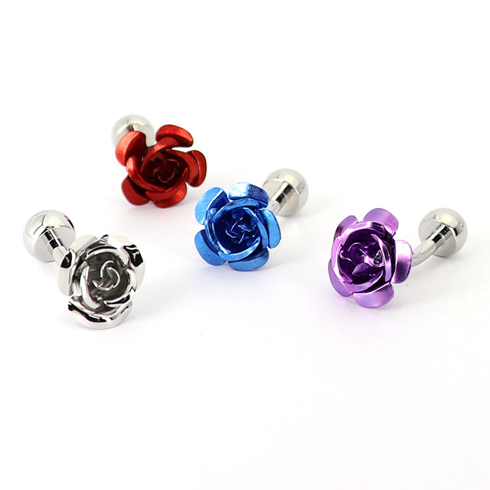 ■ 金属 花びら 【 色 : 赤 青 紫 銀 】 薔薇の花 カフス ■ おしゃれ 男女 かわいい 結婚式 スーツ 人気 カフリングス プレゼント ギフト 入園式 入学式 成人式