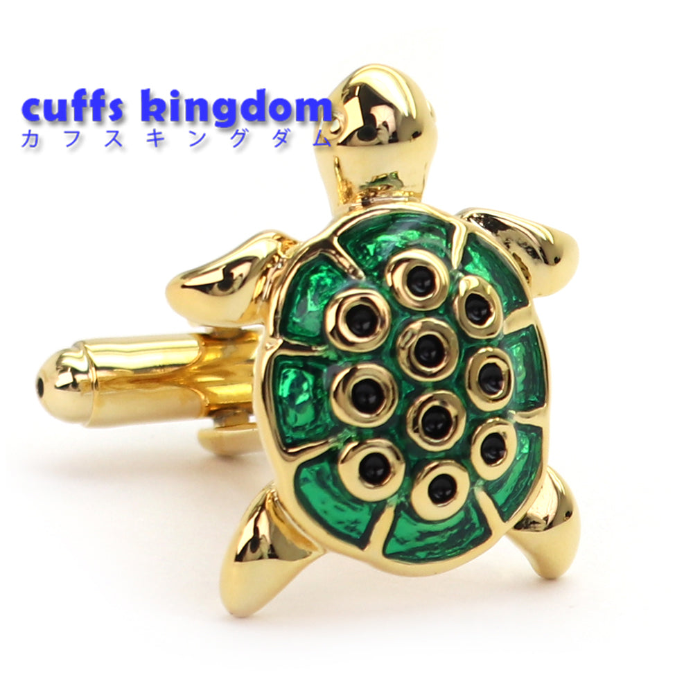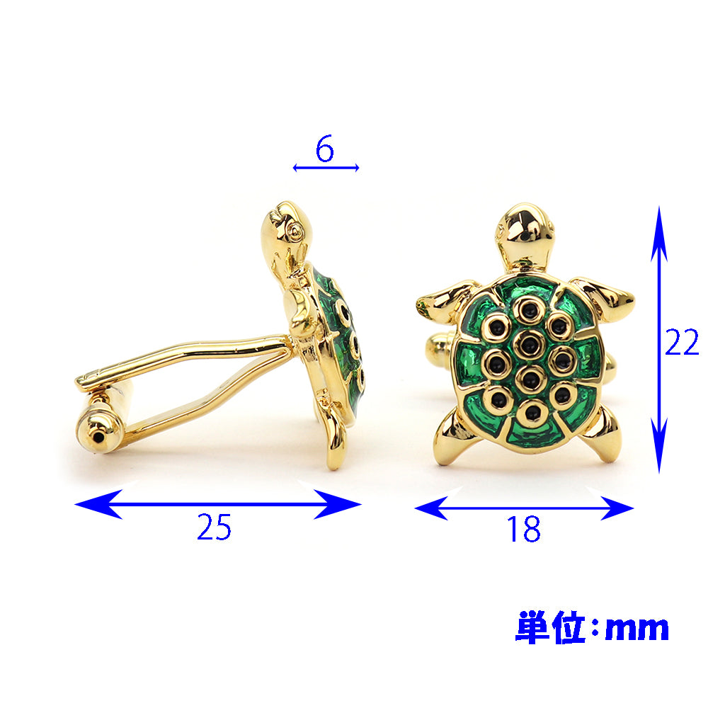 黄金 みどり 亀 カフスボタン ( 甲羅部分綺麗なガラス細工 ) 【 緑系 グリーン 男女 カフリングス 営業マン おしゃれ かわいい 結婚式 カジュアル シンプル スーツ 人気 プレゼント ギフト 入園式 入学式 】