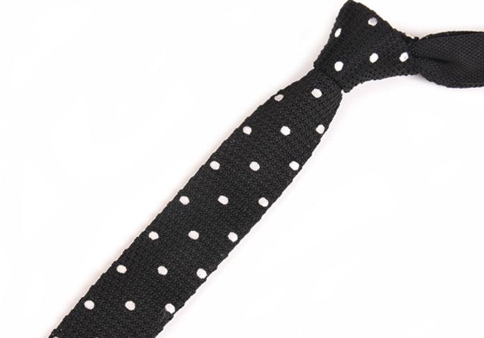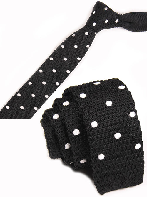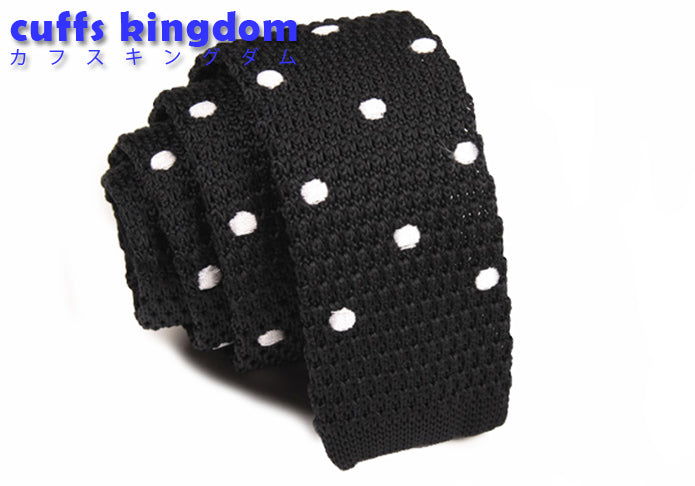 黒地-丸い-白-ドット-刺-入り-ニット-タイ-模様編み-タイプ-スタイリッシュ系-シンプル-クール-男女-おしゃれ-カジュアル-スーツ-人気-プレゼント-ギフト
