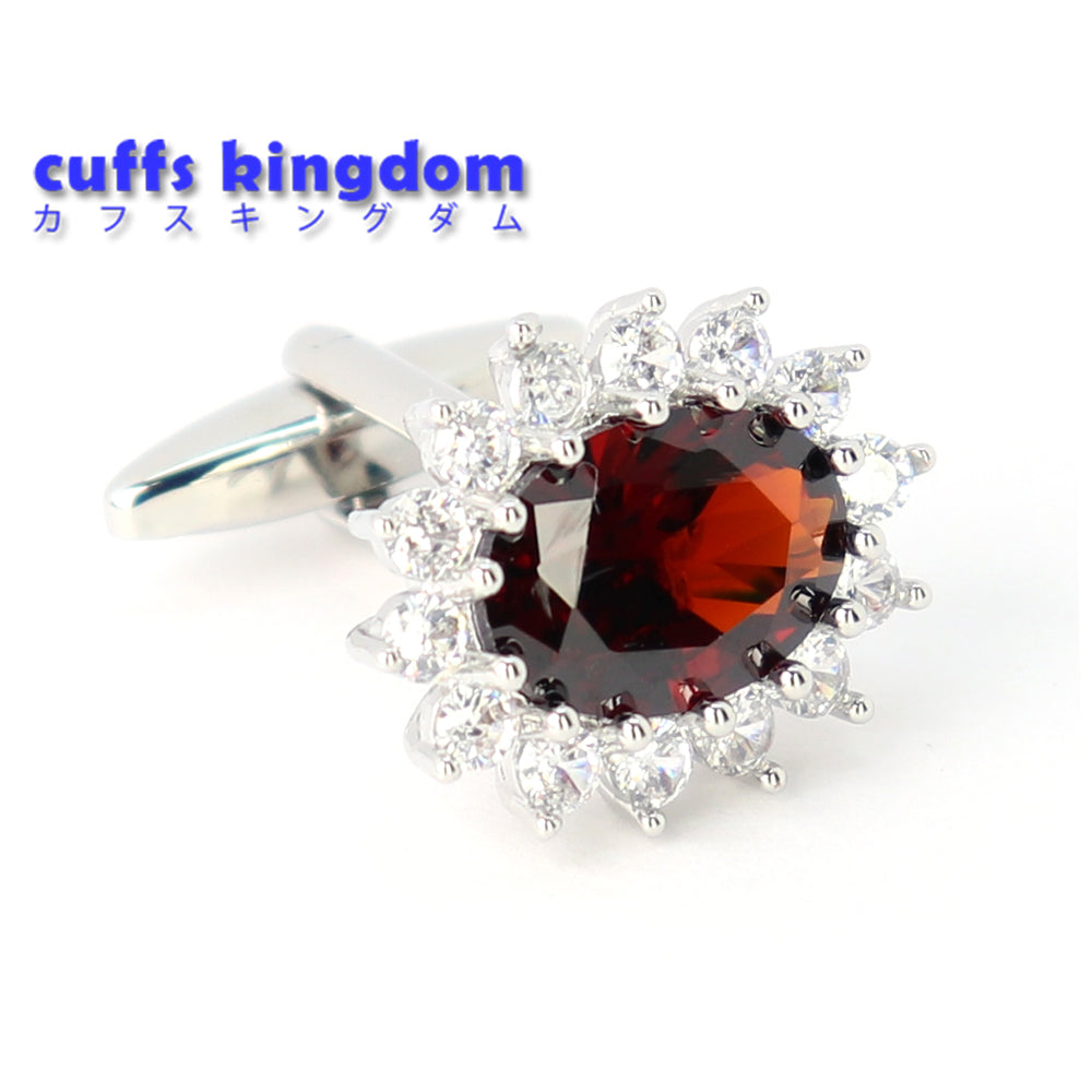 大粒-レッド-クリスタル-カフスボタン-オーバル型-シルバー-シルバー-ジュエル系-おしゃれ-男女-カフリングス-エレガント-豪華-結婚式-プレゼント-カフス専門店