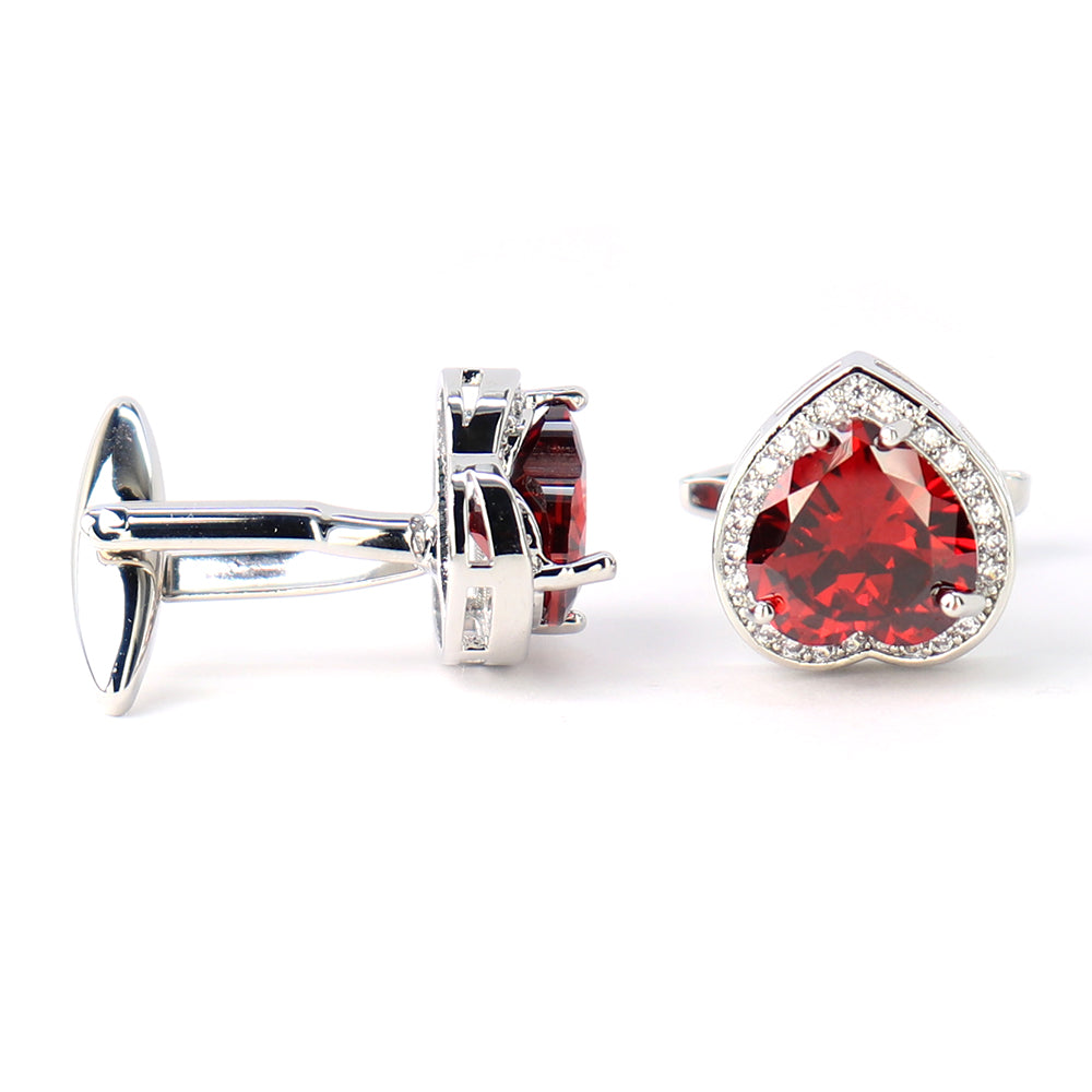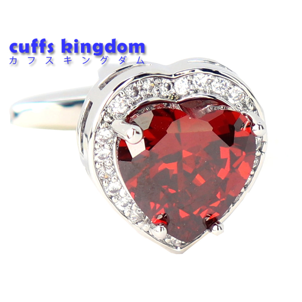 大粒-レッド-クリスタル-カフスボタン-ハート型-シルバー-シルバー-ジュエル系-おしゃれ-男女-カフリングス-エレガント-豪華-結婚式-プレゼント-カフス専門店