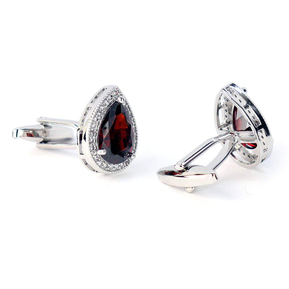 大粒-ワインレッド-クリスタル-カフスボタン-しずく型-シルバー-シルバー-ジュエル系-おしゃれ-男女-カフリングス-エレガント-豪華-結婚式-プレゼント-カフス専門店